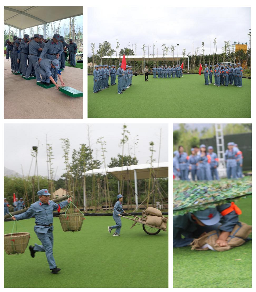 上午,參加團(tuán)建活動的員工身穿紅軍裝,共同化身紅軍戰(zhàn)士,冒雨參與了穿越封鎖線、支援前線、朱德的扁擔(dān)、沼澤急行軍等長征體驗(yàn)項(xiàng)目。通過親身參與體驗(yàn)匍匐前進(jìn)、推小推車、挑扁擔(dān)等項(xiàng)目,切身感受了老一輩共產(chǎn)黨人在惡劣環(huán)境中開展英勇革命斗爭的堅強(qiáng)意志力。