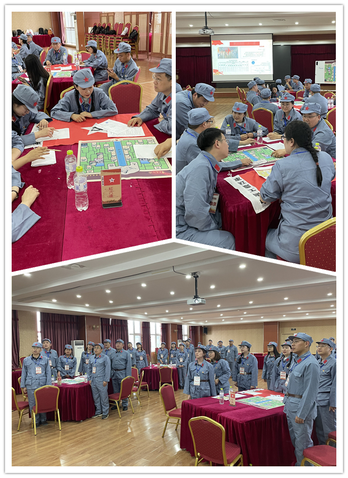 下午,重走長征路情景沙盤課程中,授課老師帶領(lǐng)大家重溫了長征那段波瀾壯闊的歷史,全體人員精神飽滿,齊聲朗誦《七律·長征》。沙盤推演中,全體人員組成了6個連隊,以“巧渡金沙江”“飛奪瀘定橋”“爬雪山”“過草地”等長征中的重大事件為背景,通過沙盤畫面和任務(wù)設(shè)定等方式,深刻了解了在各種復(fù)雜艱難的形勢下,紅軍戰(zhàn)士用智慧和信念贏得長征勝利的光輝歷程。